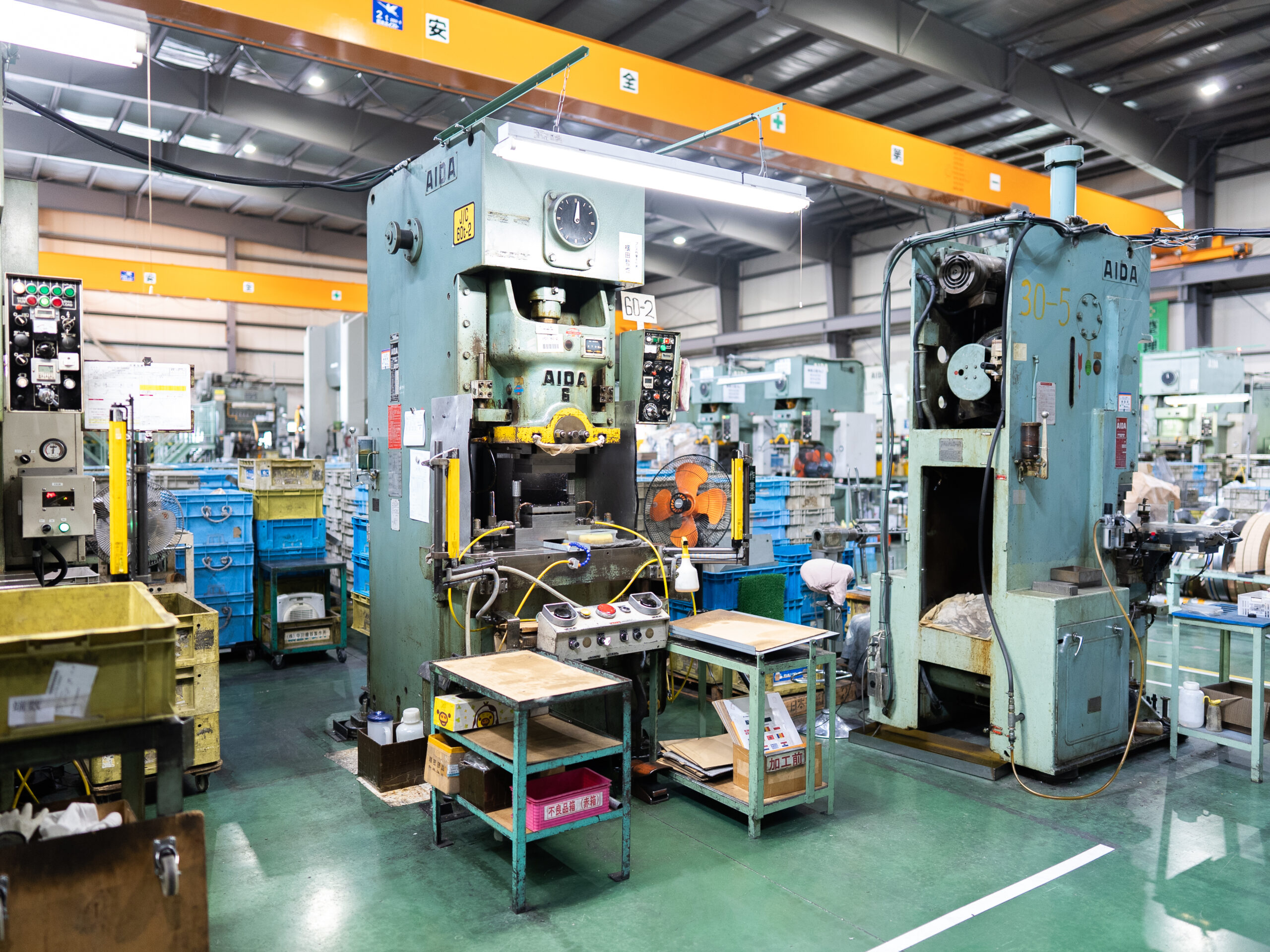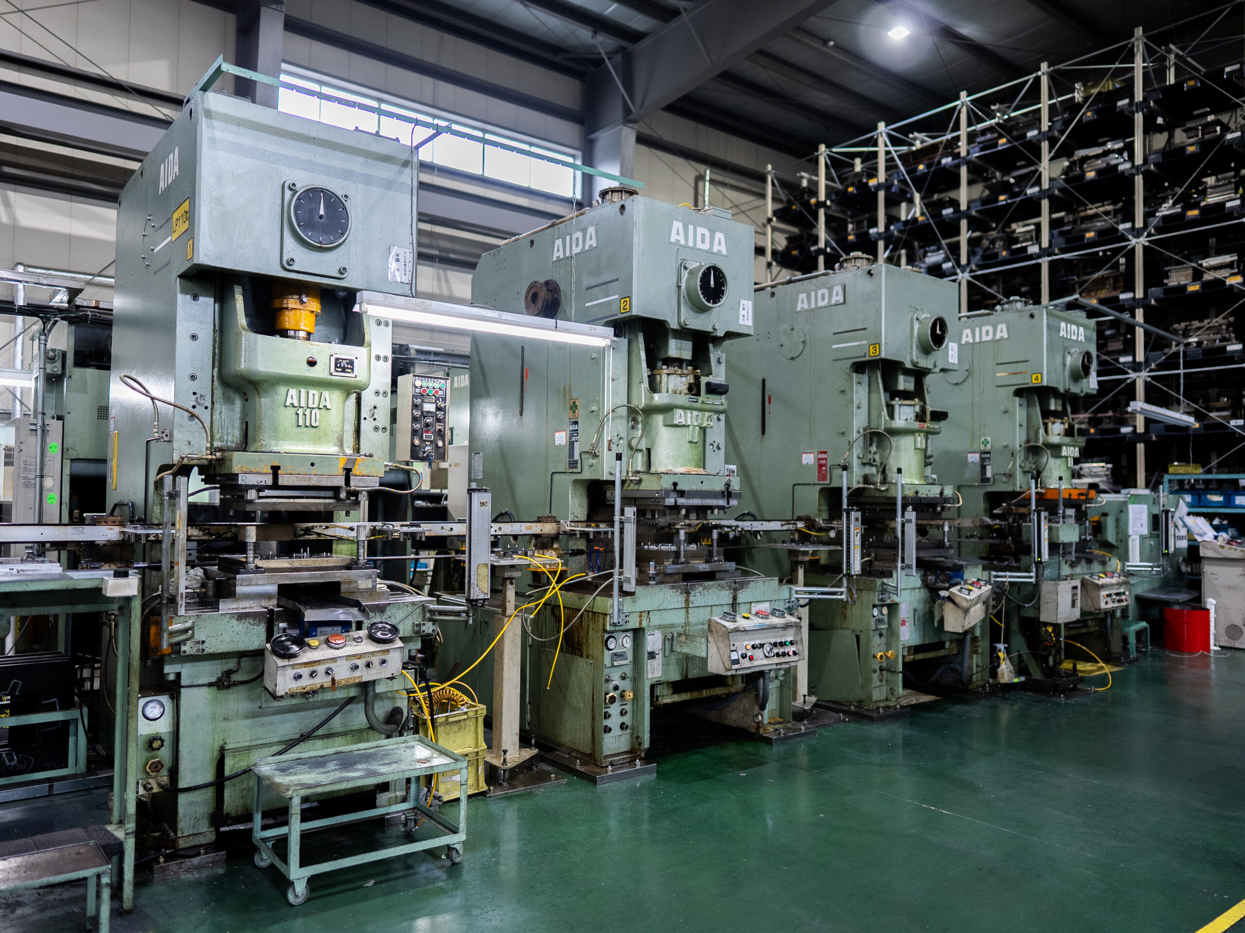 30トンから110トンまでの多様なプレス機を保有し、小型部品から中型部品まで幅広い製品に対応しています。高精度な金型と熟練の技術により、複雑な形状の部品製作も可能です。